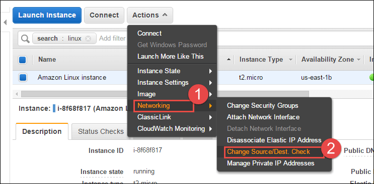 源/目标检查属性控制是否在实例上启用了源/目标检查。禁用此属性使实例能够处理未专门指定给该实例的网络流量。例如,运行网络地址转换、路由或防火墙等服务的实例应将此值设置为禁用。
