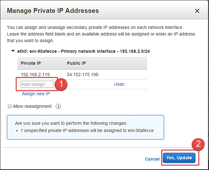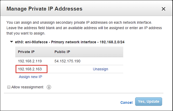 您将被重定向到一个新窗口,用于为您的实例分配辅助 IP 地址。