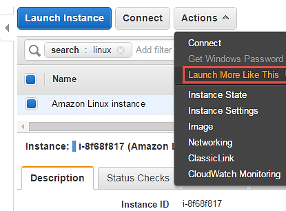 如果您有一个具有特定配置的 EC2 实例正在运行,并且您希望在一次点击部署中快速启动另一个实例,那么“启动更多类似实例”选项可以帮助我们做到这一点。