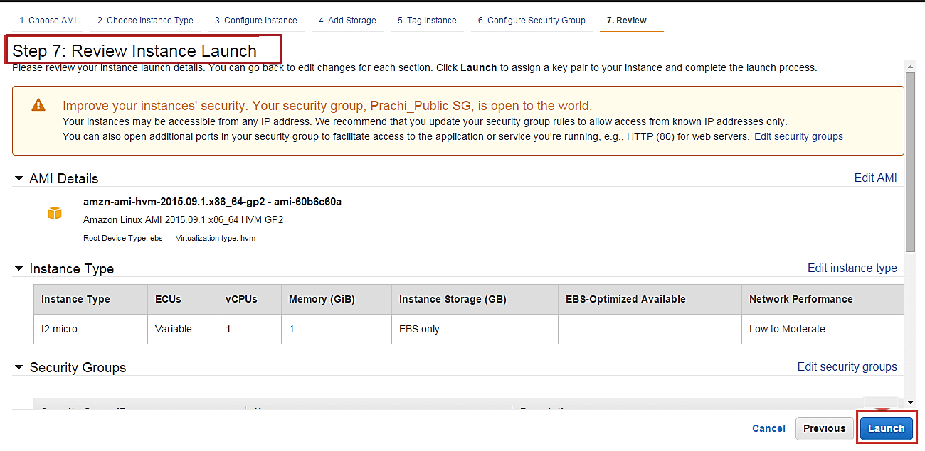 您将被直接带到启动实例向导的“查看实例详细信息”页面。在这里我们可以再次验证所有详细信息。