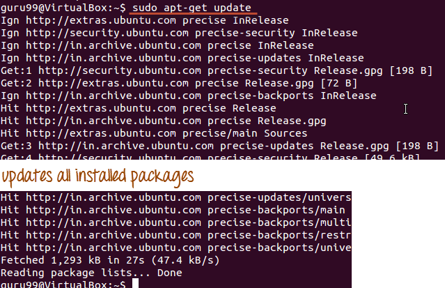 您可以使用 **apt** 命令安装或删除包。让我们使用命令更新系统中所有已安装的包 –