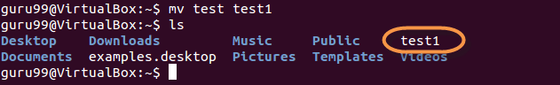guru99@VirtualBox:~$ sudo mv sample2 /home/quru99/Documents [sudo] password for guru99: **** guru99@VirtualBox:~$