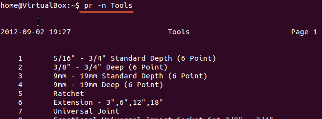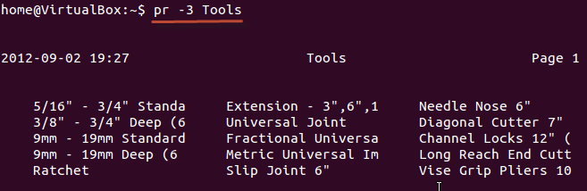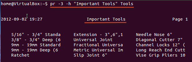 这些是您可以使用的一些 ‘pr’ 命令选项来修改文件格式。