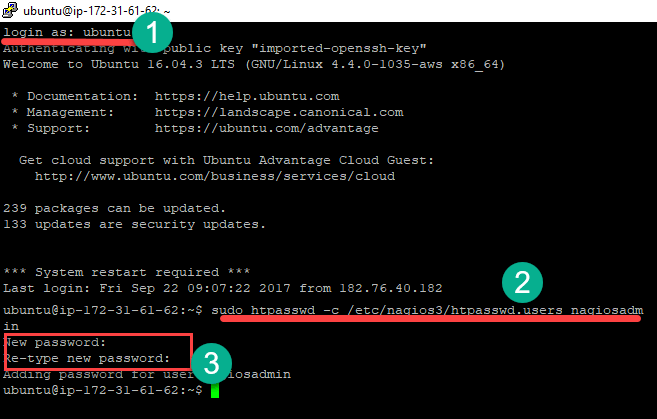 - 运行此命令 sudo htpasswd -c /etc/nagios3/htpasswd.users nagiosadmin