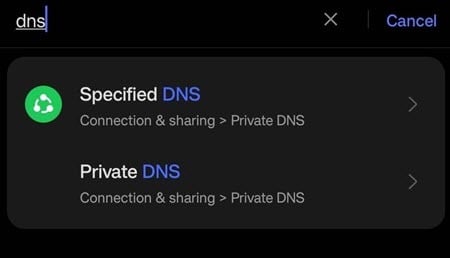 第 2 步)进入您设备的网络配置,在搜索栏中输入“专用 DNS”