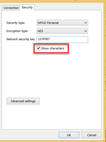 勾选“显示字符”复选框以查看 Wi-Fi 的网络安全密钥。