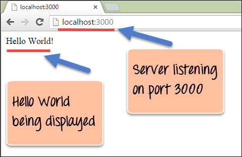- 由于我们在代码中特别指定服务器监听端口号 3000,因此在浏览此 URL 时我们可以看到输出。