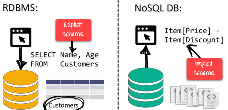 - NoSQL 数据库要么是无模式的,要么是具有宽松模式的