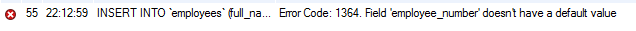 现在我们尝试插入一条新记录而不指定员工姓名,看看会发生什么。