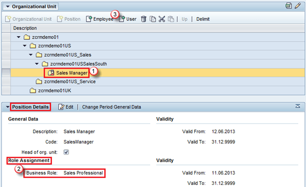 - 我们可以将用户或员工分配给在组织模型中创建的职位