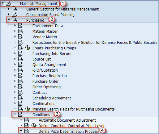 事务码 SPRO => 物料管理 => 采购 => 条件 => 定义价格确定过程