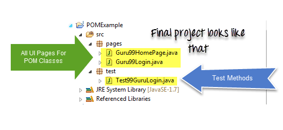 这是页面对象模型框架的基本结构,其中 AUT 的所有 Web 元素以及对这些 Web 元素进行操作的方法都维护在一个类文件中。验证等任务应作为测试方法的一部分单独进行。