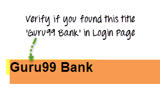 步骤 2) 在主页中检查文本“Guru99 Bank”是否存在
