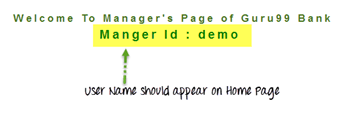步骤 4) 验证主页是否包含文本“经理 ID:demo”
