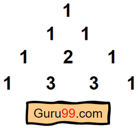 第二步) 对于行“i”,将总共有“i”个元素。每个元素将通过 C(n,r) 计算,其中 n 为 i-1。