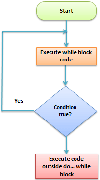 - While… (While…) – 先检查条件。如果它评估为真,则只要条件为真,代码块就会执行。如果它评估为假,则 while 循环的执行将终止。