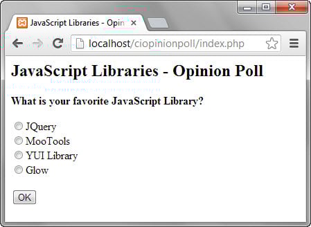 我们现在将把意见调查应用程序移植到CodeIgniter。回想一下,我们的应用程序分为三个主要组件,即: