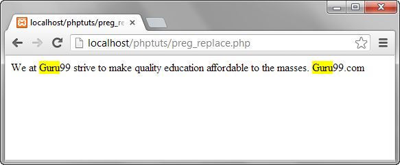 假设您已保存文件 preg_replace.php,请浏览到 URL https:///phptuts/preg_replace.php