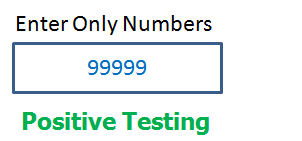 应用程序中有一个只能接受数字的文本框。输入0到99999之间的值系统将接受,除此之外的任何其他值都不应接受。要进行积极测试,设置0到99999之间的有效输入值,并检查系统是否接受这些值。