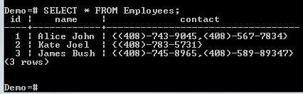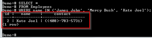 我们有一个包含三个名字的列表。我们正在搜索是否可以在 Employees 表的 name 列中找到这些名字中的任何一个。Kate Joel 与表中一条记录匹配,并返回了其详细信息。