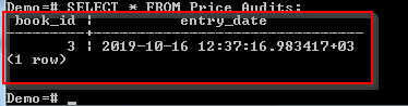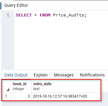 现在我们已经向 Price 表插入了一条记录,Price_Audit 表也应该插入一条记录。这将是我们为 Price 表创建的触发器的结果。让我们检查一下