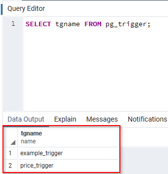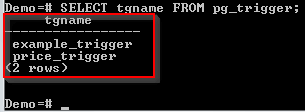 您在 PostgreSQL 中创建的所有触发器都存储在 pg_trigger 表中。要查看您在 数据库 上拥有的触发器列表,请运行下面的 SELECT 命令查询该表
