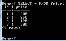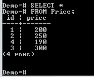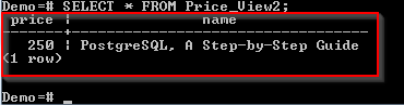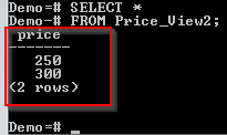 上述命令将创建一个基于 SELECT 语句的视图。只有价格大于 200 的记录将被添加到视图中。视图已被命名为 Price_View。让我们查询它以查看其内容