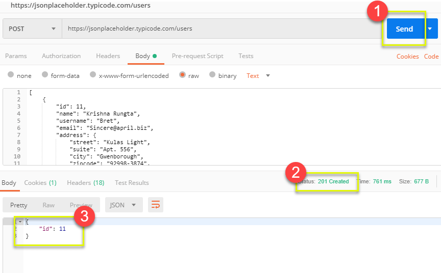 *注意:在线 Post 请求应具有正确的格式,以确保请求的数据将被创建。一个好的做法是首先使用 Get 来检查请求的 JSON 格式。您可以使用像 https://jsonformatter.curiousconcept.com/ 这样的工具。