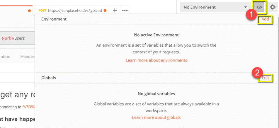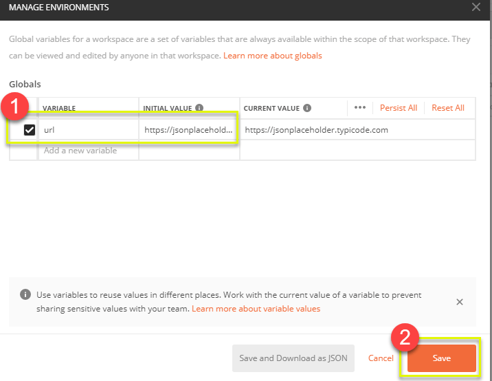 - 将名称设置为 url,其值为 https://jsonplaceholder.typicode.com