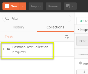 - Collections(集合)– 通过创建集合来组织你的测试套件。每个集合可以有子文件夹和多个请求。请求或文件夹也可以被复制。