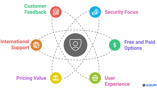 在Guru99,我们对可信度的承诺通过严格的研究和评审流程,提供准确、相关和客观的内容。我分析了 40 多款最佳 Privacy.com 替代方案,投入了 100 多个小时,提供了一个全面的免费和付费选项列表。本公正的评测涵盖了功能、优缺点和定价,为您提供了对顶级选择的秘密一瞥。我们专注于提供强大安全性和无缝用户体验的受信任工具。请查看以下重要因素。