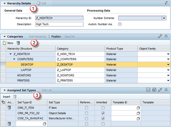 - 也可以根据业务场景的需求在 SAP CRM 中创建自定义层级。同样,我们可以为产品主数据创建自定义类别。
