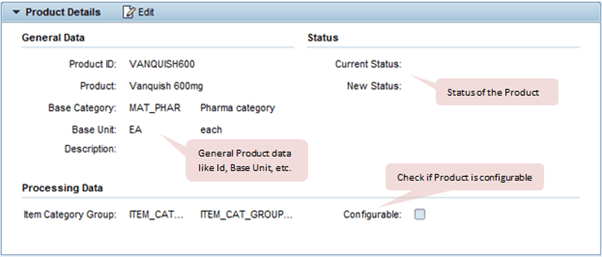 - 在产品详细信息分配块中,我们可以看到为产品维护的常规数据。