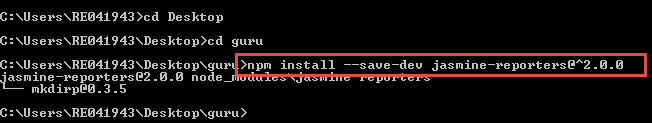 上述命令将本地安装 jasmine reports node-modules,即从我们在命令提示符中运行命令的目录进行安装。