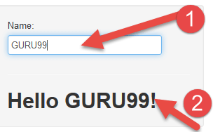 步骤 1)我们必须登录 https://angularjs.org 并在“Enter a name here”文本框中输入文本“GURU99”。