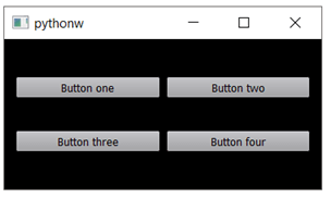 类似地,按钮将从窗口的左侧移动 110 像素,从顶部移动 150 像素。此示例是实现布局的粗略方法,通常不在生产中使用;它仅在此处用于学习目的。Qt 支持不同的布局,您将在本 PyQt 教程的后续部分中详细介绍。