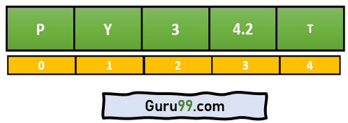 The original list ['P', 'Y', '3', '4.2', 'T'] At index 0: P At index 3: 4.2 The appended list ['P', 'Y', '3', '4.2', 'T', 'n'] At index 5 post append: n