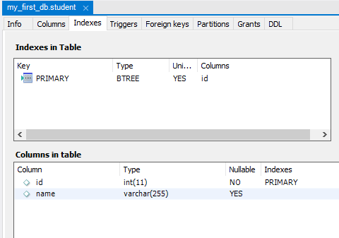 db_cursor.execute("CREATE TABLE student (id INT, name VARCHAR(255))")