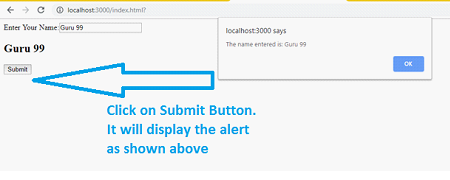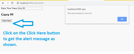 alert("The name entered is: "+ this.state.name);