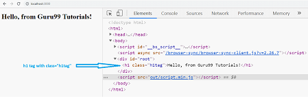 <h1>Hello, from Guru99 Tutorials!</h1>,
