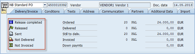 需要了解的重要信息是,采购文件在发布后不能更改。这意味着应该只发布最终版本。未发布的文档(RFQ - 报价请求,PO - 采购订单,计划协议,合同)不能进一步处理(将RFQ转换为报价,PO转换为收货,发票验证)。流程