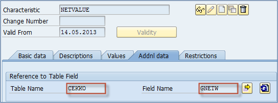 第2步:在附加数据选项卡上将字段分配给特征。我们将字段CEKKO-GNETW分配给该特征,因为该字段是采购文档的值。