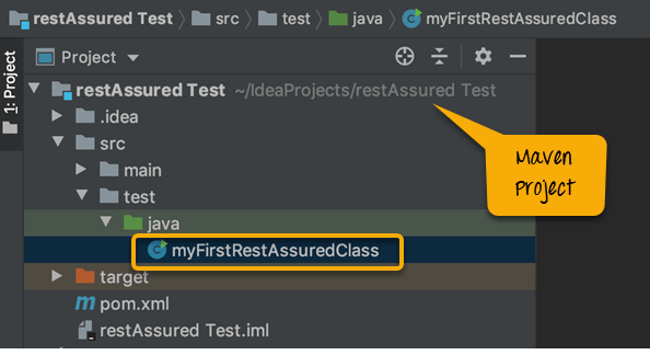 步骤 1) 创建一个名为“myFirstRestAssuredClass”的类