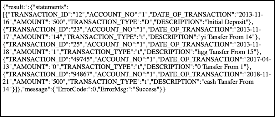 步骤 3) 到达金额的路径是“result.statements.AMOUNT”。把它想象成 Selenium 中的 Xpath。