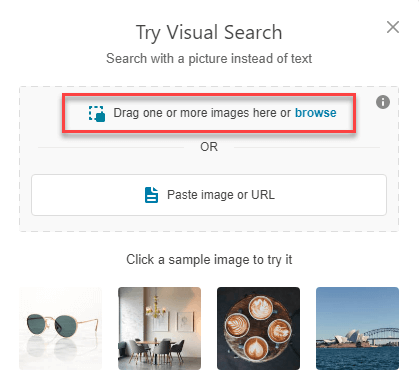 它会为您提供两个选项。在第一个选项中,您需要选择要搜索的图片。