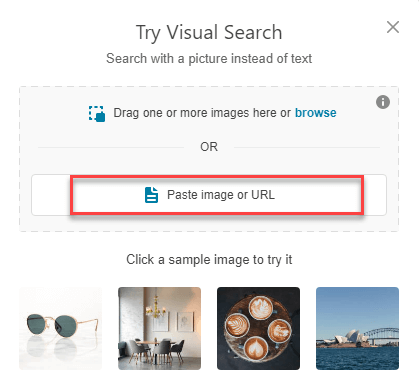 步骤 2) 这将显示一个新的搜索,为您提供两个选项。在第一个选项中,您必须按 URL 粘贴图片。