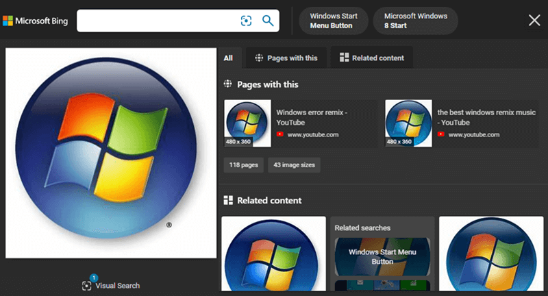 Bing 视觉搜索是一个基于图片的搜索网站,可供用户在各种设备上使用。您可以将图片作为输入,并获得良好的知识和操作。