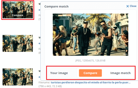 步骤 3) 选择一张图片进行比较。如果图片相同,请导航到网站。