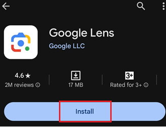 步骤 2) 下载 Google Lens 应用或点击 Google Chrome 应用搜索页面上的相机图标。