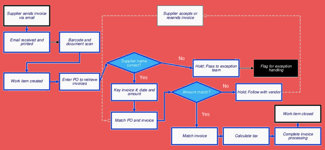 在本 RPA 教程中,请考虑以下关于发票处理业务流程的示例